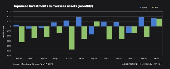 与此同时,日本投资者在1月份也向外国股市投入了1.67万亿日元,为连续第二个月净买入。